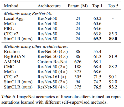 SimCLR 研究者使用三种不同的隐藏的宽度 ($1\times,2\times,4\times$) 进行对比。