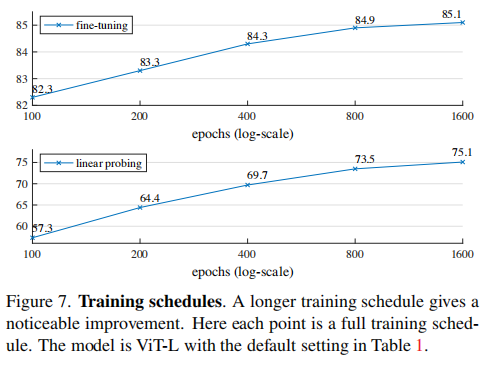 他们还研究了一种变体,重建目标是每个 mask patches 的归一化后的像素值。具体地说,他们计算一个 patch 中所有像素的平均值和标准差,并使用他们来归一化这个 patch。在他们的实验中,使用归一化的像素值可以提高 representation 的质量。